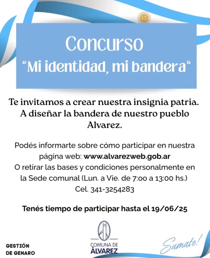«Mi identidad, mi bandera», bajo ese slogan la comuna por Joel De Genaro invita a todos los alvarenses a diseñar la bandera del pueblo.
