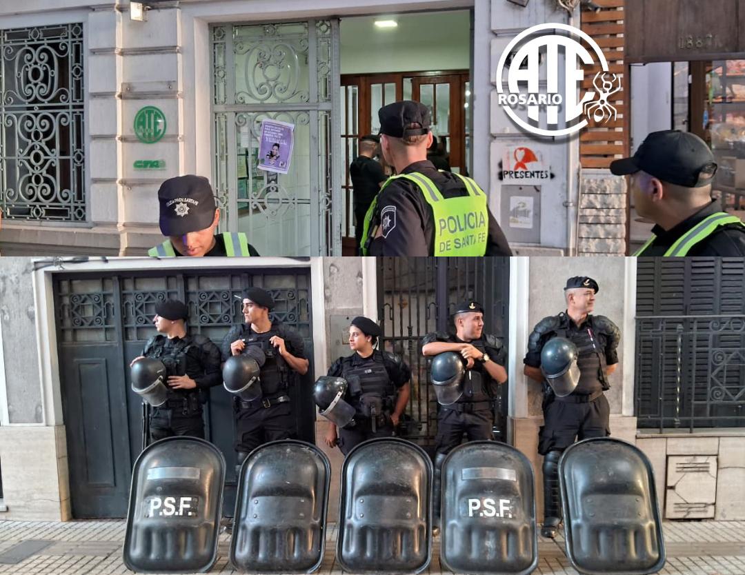 ATE Rosario lanzó un comunicado manifestando “profunda preocupación” y exigió explicaciones al Gobierno de la provincia de Santa Fe por los hechos ocurridos el viernes 17 de abril en la sede sindical, ubicada en San Lorenzo 1879. Efectivos de la Policía de Santa Fe se presentaron solicitando ingresar al edificio gremial, aunque “sin poder explicar las razones de su presencia ni exhibir orden alguna que justificara su accionar”, narraron desde ATE
