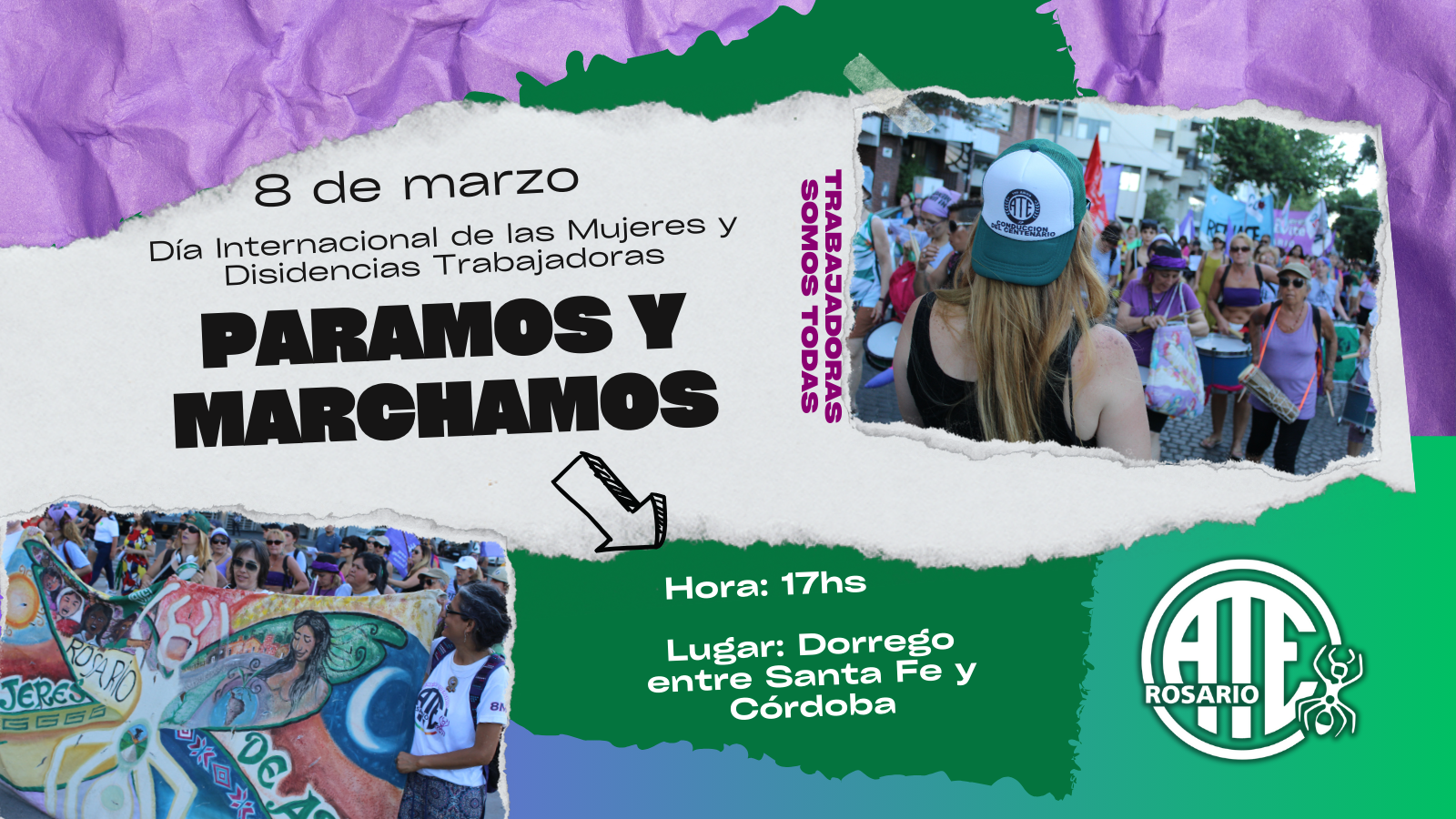En el Día Internacional de la Mujer y Disidencias Trabajadoras, pararán y movilizarán masivamente contra los ataques a los derechos conquistados, repudiando la violencia azuzada desde el propio Estado nacional, los despidos, el ajuste y la represión. La CTA Autónoma, ATE y gremios hermanos convocan en Dorrego entre Córdoba y Santa Fe, para iniciar marcha a las 17.00 horas.