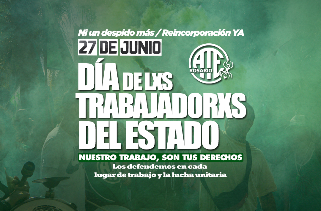 Este 27 de junio ATE Rosario convoca a las 10.00 en Gobernación, donde pedirá formalmente que este día sea extensivo a quienes trabajan en la provincia y exigirá nuevamente la devolución de días de paro. A las 18.00 en la sede gremial, Luis Campos presentará su libro ‘La Fortaleza’ y habrá jornada nacional de lucha con movilización en CABA contra la Ley Bases. El sábado, el festival en defensa de la educación la técnica y la ciencia públicas.