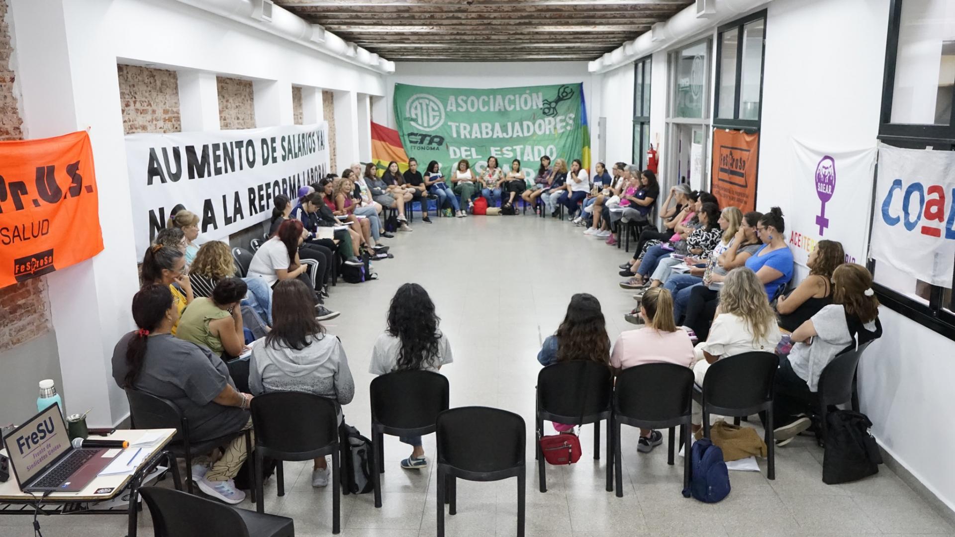 Las entidades gremiales presentes en la inmensa ronda debate fueron ATE Rosario, CTA Autónoma Rosario, SOEAR (aceiteras), Sitramus (músicas), Siprus, Fesprosa (salud), Colectivo Travesti Trans, Fenat (zona Oeste y Belgrano), UOM local (metalúrgicas), COAD, Conadu (docencia universitaria), psicólogas, APDH (derechos humanos), Amsafe Rosario (docentes), CTA de los Trabajadores, Frente 4 de abril, docentes independientes, ecologistas, textiles, estudiantes, jubiladas, entre otras.