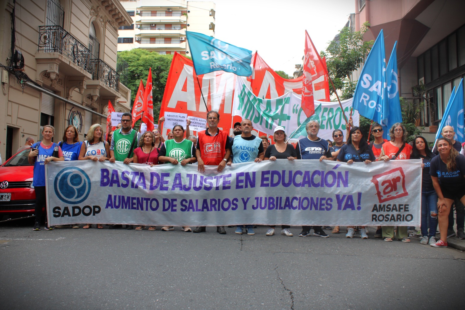 Es por eso que la bronca saltó fuerte este martes en el cese de actividades y movilización unitaria entre ATE Rosario, Amsafe, Sadop y Siprus. Desde Plaza 25 de Mayo a la San Martín, miles de voces agitaron consignas como “plata hay”, “el hambre es un crimen”, “la lucha que se pierde es la que se abandona” y “basta de ajuste”.