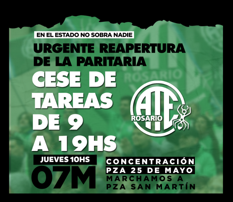 Con esa convicción y fuerza, las y los estatales de Rosario expresarán en dos jornadas consecutivas su descontento en unidad, con solidaridad y reivindicando el derecho a una vida digna de todos los habitantes de esta provincia rica.