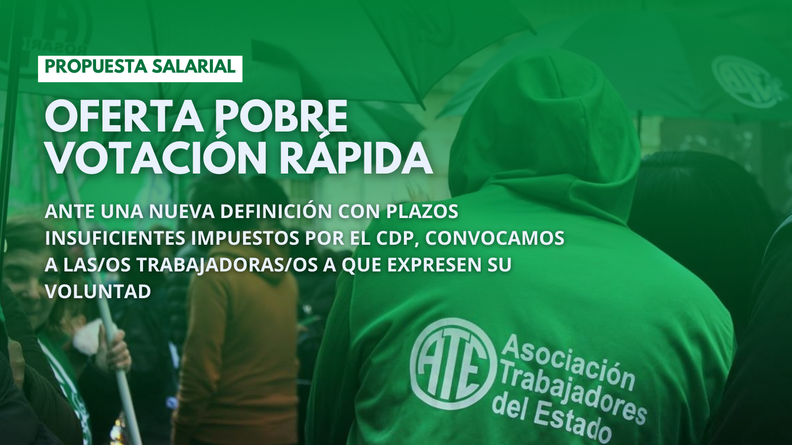 Como plantean en cada votación, el sindicato provincial debería instrumentar una votación con tiempos que permitan la expresión de las decenas de miles de trabajadores y trabajadoras de toda la provincia. Hasta ahora sólo se corre tras la urgencia de los gobiernos. En ATE CADA AFILIADO/A DEBE VALER UN VOTO para definir cuestiones tan trascendentes como el salario.