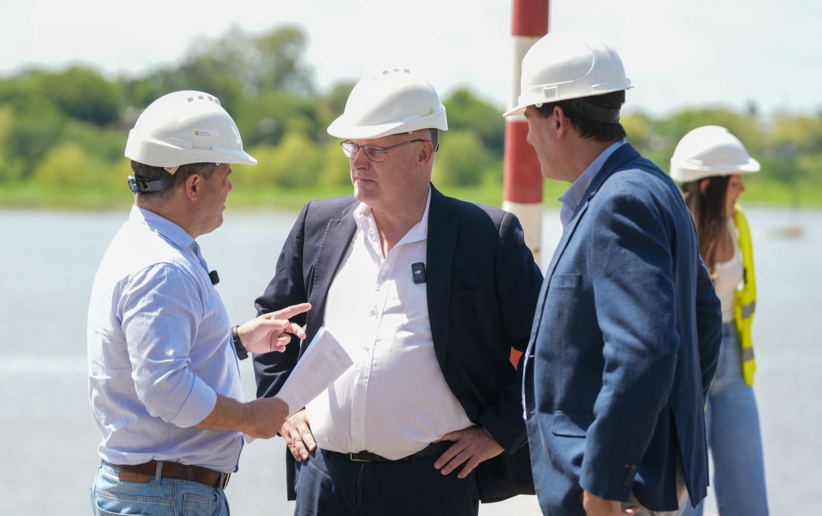 El subsecretario de Transporte y Logística de la Provincia, Jorge Henn, junto al presidente del Ente Administrador Puerto Santa Fe,…