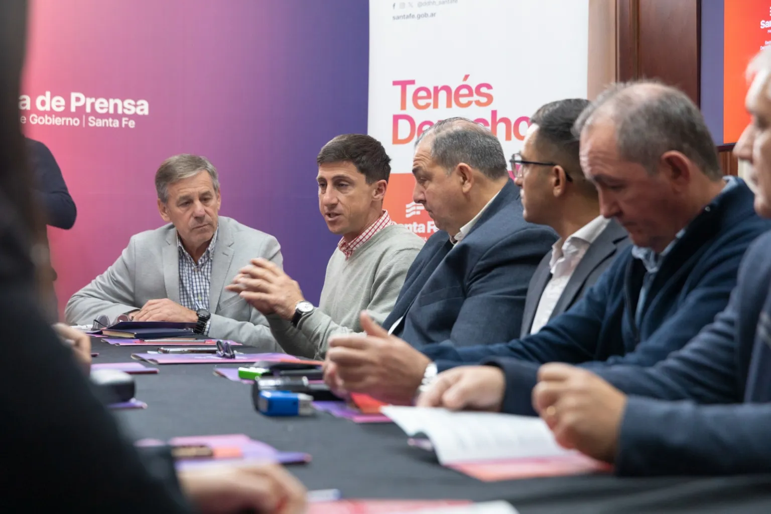 El secretario de Derechos Humanos de la Provincia, Emilio Jatón, y el senador provincial, Julio Garibaldi, firmaron este jueves un convenio con gobiernos locales del departamento La Capital para articular y coordinar políticas de defensa y promoción de los derechos de santafesinas y santafesinos, en el marco del Programa Tenés Derechos. El acto se llevó a cabo en la sala Auditorio de Casa de Gobierno.