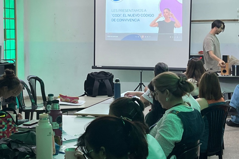 Por su parte, en el encuentro también se expuso la experiencia de la Escuela Roque Sáenz Peña, donde Codi se trabajó el año pasado de manera sostenida a través de talleres áulicos, dinámicas grupales y actividades lúdicas que abordaron situaciones concretas de la vida cotidiana escolar. A partir de estos encuentros, los estudiantes pudieron identificar problemáticas vinculadas a la convivencia y proponer soluciones colectivas, fortaleciendo el diálogo y el respeto mutuo.