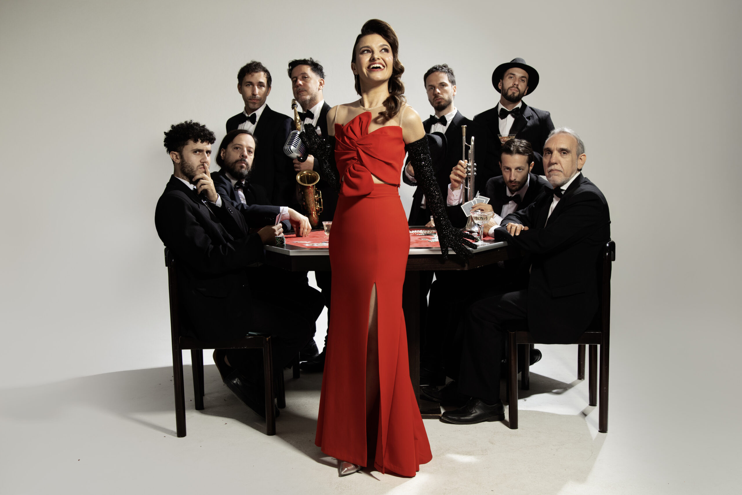 Liderados por la versátil voz y el carisma escénico de Elizabeth Karayekov, “Ases del swing” nos lleva a un viaje musical inspirado en la atmósfera vibrante de los salones de baile de los años 40 y el glamour de los casinos clandestinos.