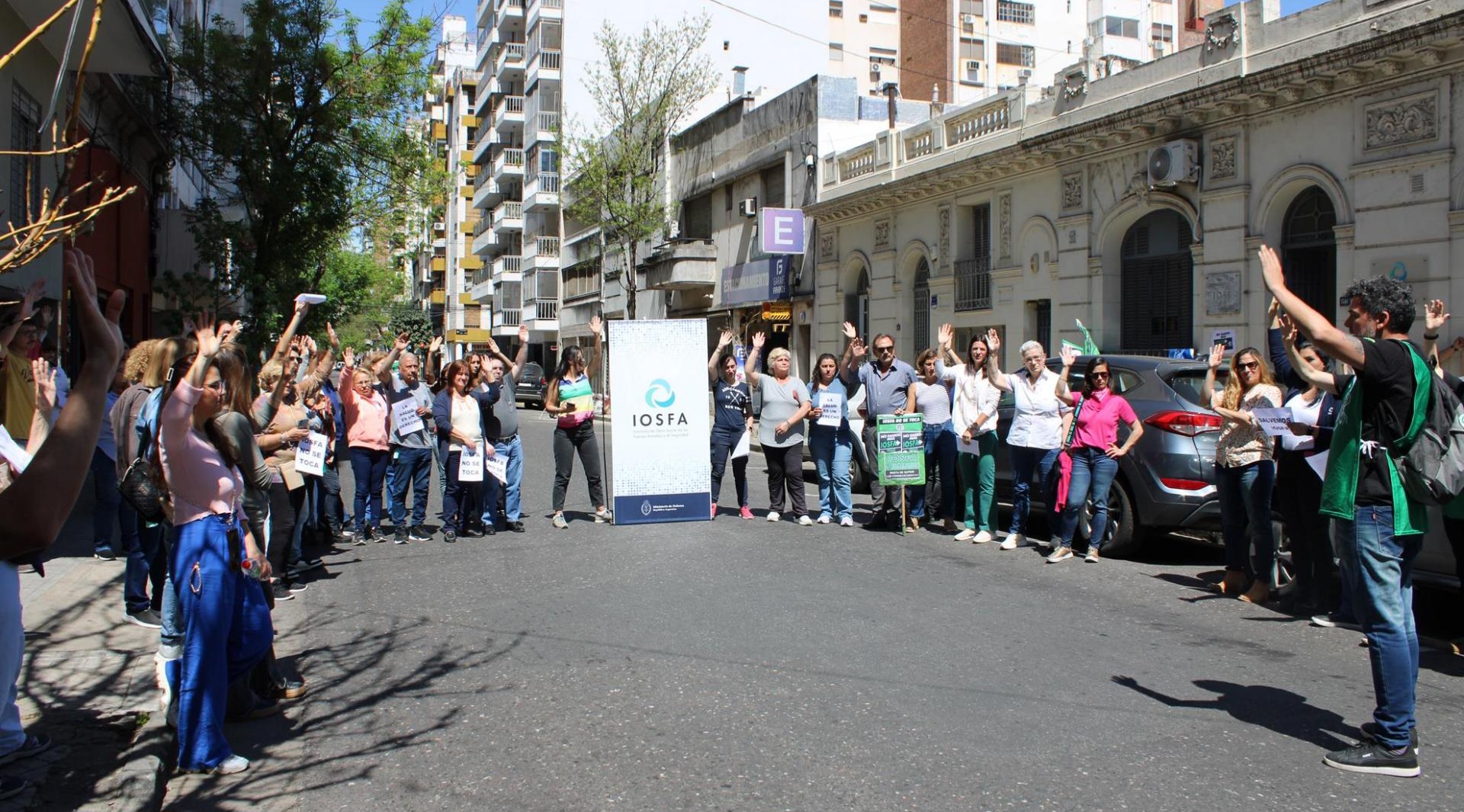 Personal y usuarios del Instituto de Obra Social de las Fuerzas Armadas y de Seguridad (IOSFA) realizaron una asamblea frente a la sede local. Denunciaron, abrazados por trabajadores nacionales de distintas áreas, que se les cortaron las prestaciones a alrededor de 20.000 personas. El próximo miércoles realizarán una nueva jornada de lucha.
