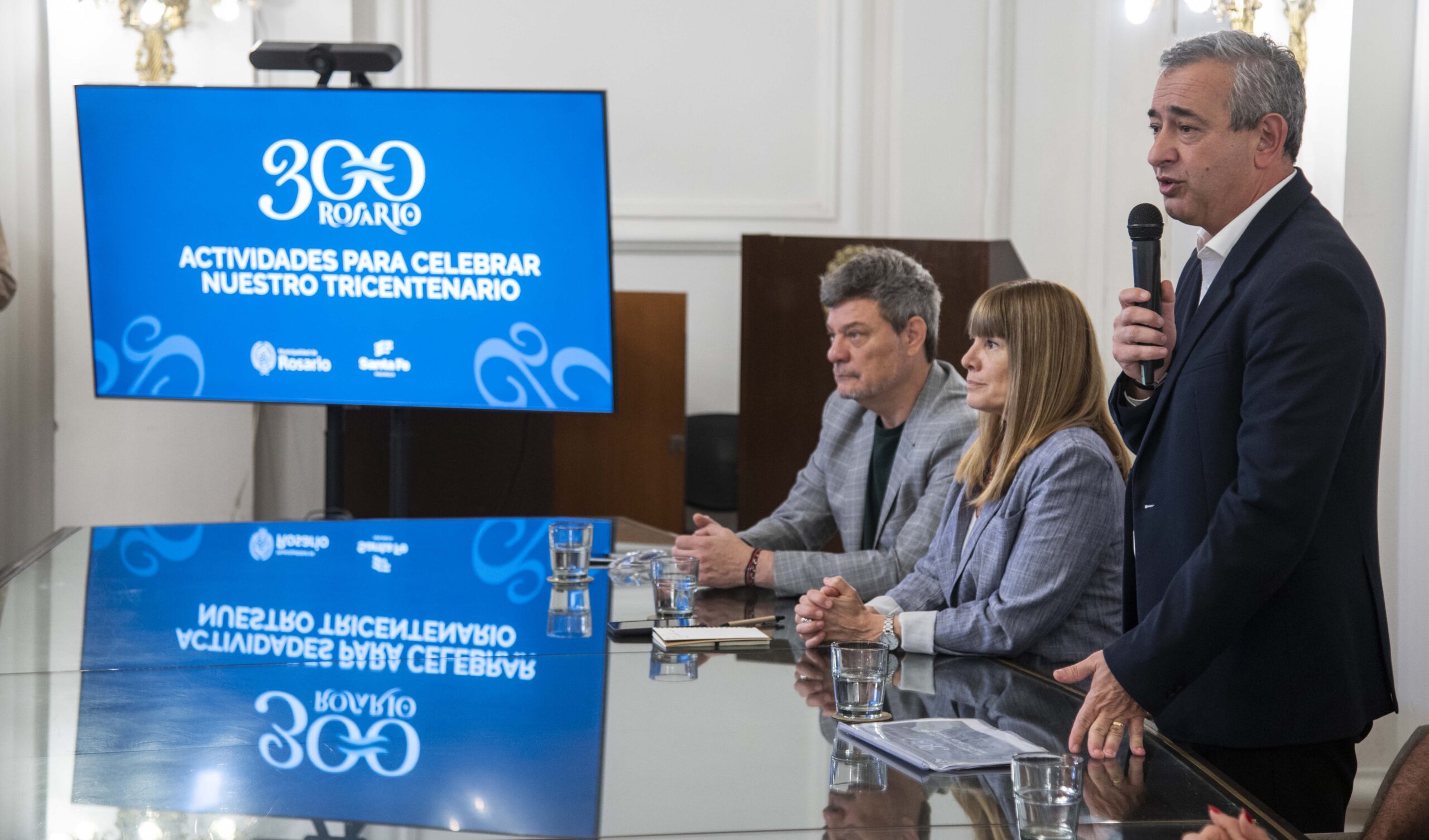 El intendente Pablo Javkin brindó detalles este miércoles de la agenda de actividades culturales que tendrán lugar en el marco de los festejos del tricentenario de la ciudad, entre los que se destaca el espectáculo central que se llevará a cabo el martes 7 de octubre con la presentación de Nicki Nicole, junto a la Orquesta Sinfónica Provincial, y de Juan Carlos Baglietto, en un evento gratuito y abierto a toda la ciudadanía que se realizará desde las 18 en el Monumento Nacional a la Bandera. A su vez, el mandatario compartió información de importantes obras que se inaugurarán o pondrán en marcha en los próximos meses, como parte del legado de los 300 años de Rosario.