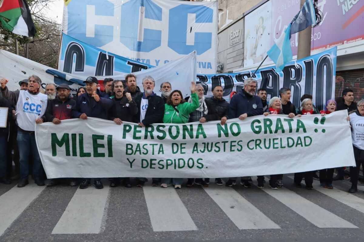 Gremios del Transporte nucleados en la Confederación de Trabajadores del Transporte (CATT) seccional Rosario – Recolectores. Dragado y Balizamiento, Camioneros de Santa Fe, Cadetes de Rosario, Conductores Navales nucleados en Siconara), junto a organizaciones sociales (La CCC , Movimiento Evita, UTEP) entre otras y otros gremios locales (COAD; ATE Rosario) ya avisaron que movilizaran en dicha jornada para expresar su rechazo a las política del gobierno que preside Milei. Este jueves se concentraron desde las 17.30 hs en la denominada Plaza de la Cooperación (Mitre Y Tucumán) para luego marchar al parque España.