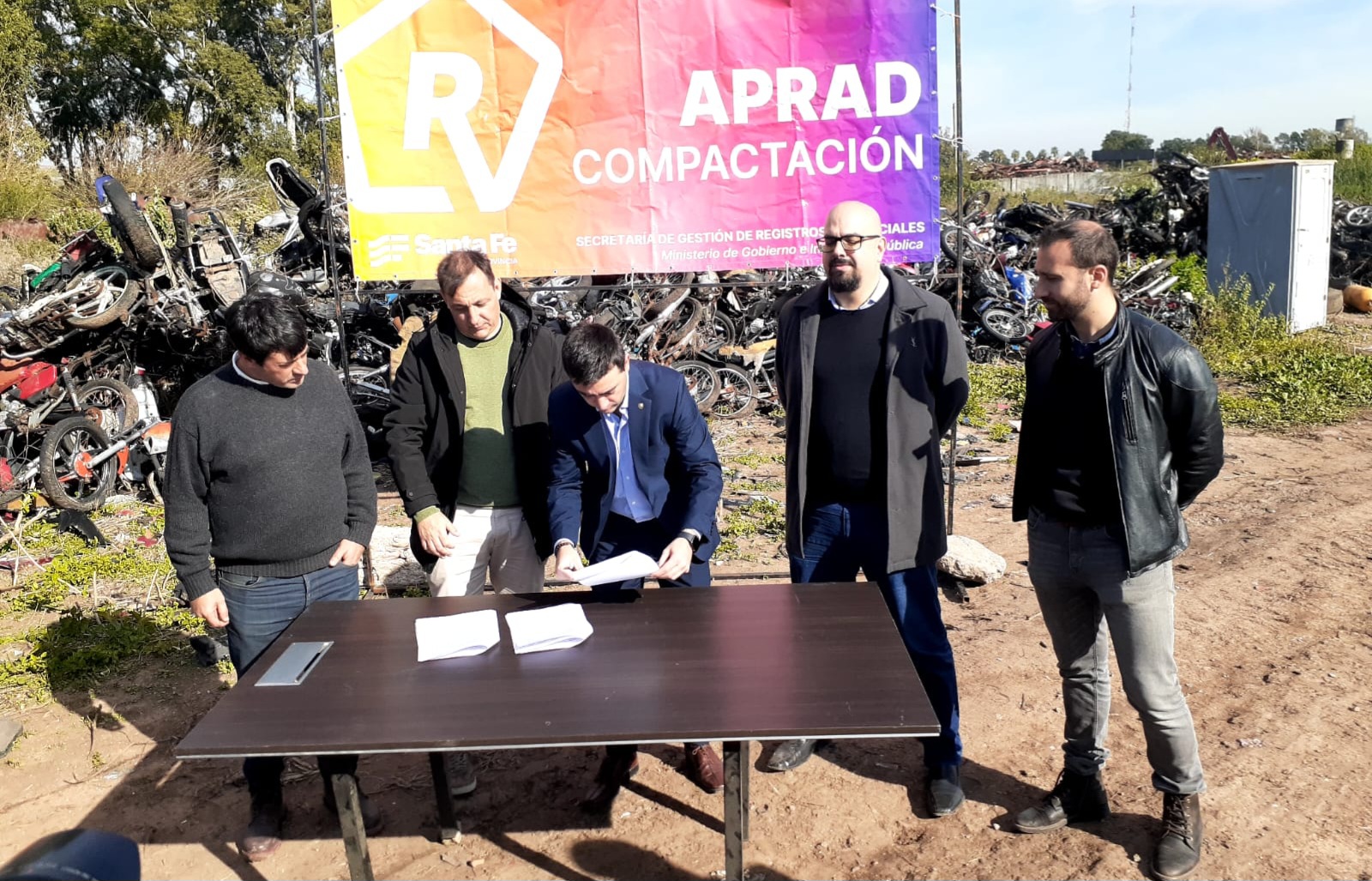 El convenio firmado permite que la Provincia, que ya está llevando a cabo un proceso de compactación en el depósito judicial de zona oeste de Rosario (en Espinosa 7400), pueda ahora compactar motos y vehículos que se encuentran en corralones municipales.