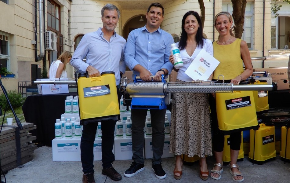 Durante la actividad, realizada en la sede Rosario del gobierno de la provincia, se hizo entrega al municipio de 2 máquinas termoniebla para fumigación, 8 mochilas manuales y 24 cajas de DEPE (poderoso insecticida de la familia de los piretroides, que no produce irritación a diferencia de otros piretroides, de bajo olor).