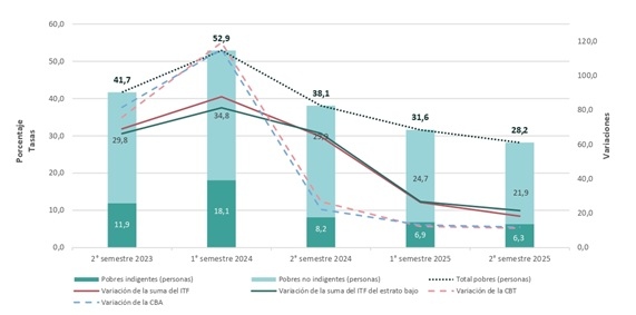 La significativa reducción de la pobreza en el segundo semestre de 2025 abre un debate técnico sobre los alcances y limitaciones de su medición por ingresos en un contexto de fuerte volatilidad macroeconómica.