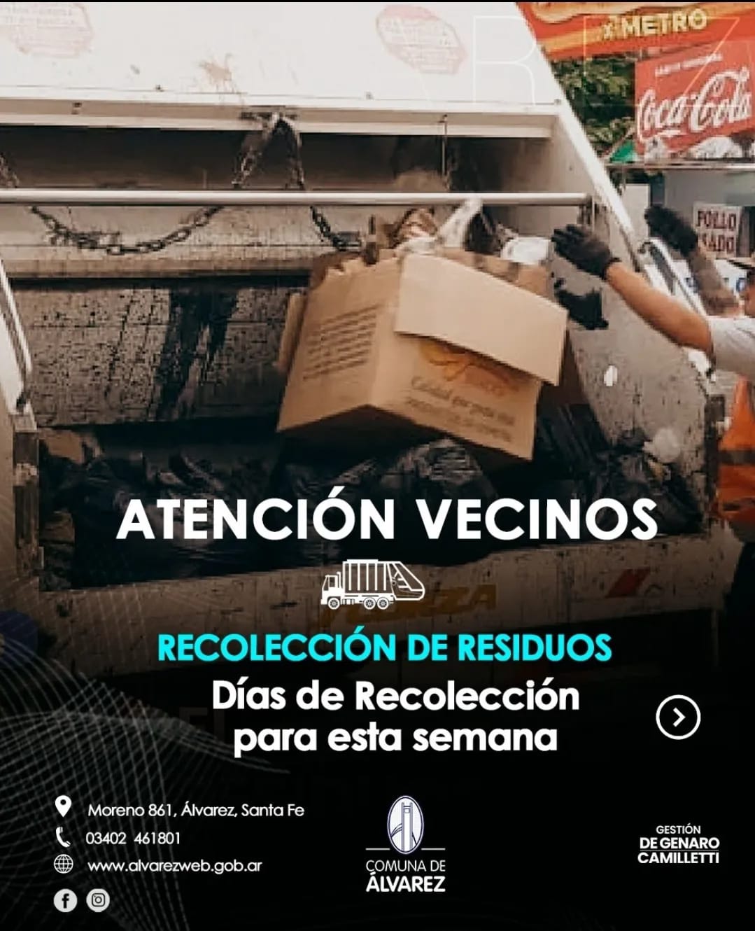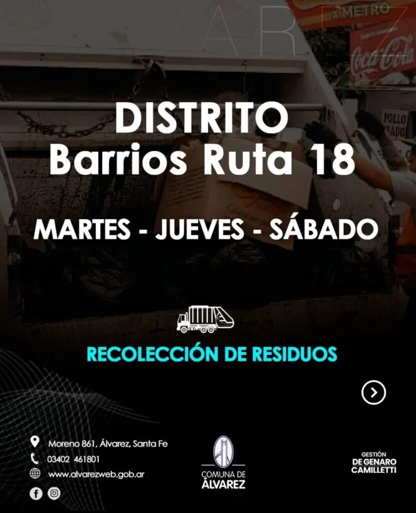 La comuna gobernada por la gestión De Genaro – Camilletti compartió el cronograma con días y zonas del servicio de recolección de residuos.