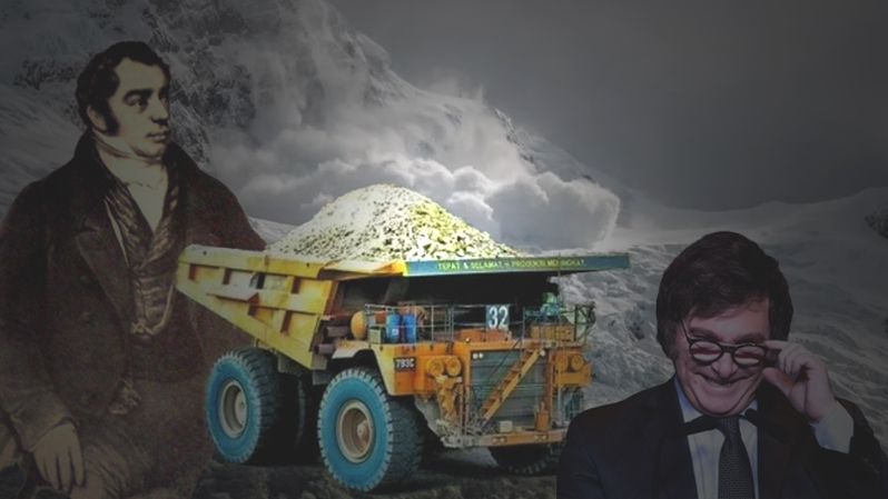 Milei trabaja para negocios multinacionales: lo prueba el caso Libra. Impulsa la entrega de los glaciares y sus riquezas. Como Rivadavia con el oro. Cobraba antes y durante su presidencia por participar en negocios. Lo mismo Rivadavia, empleado de las mineras inglesas. Más allá de la participación de 107 mil argentinos en una farsa de audiencia pública, esperan quedarse con los glaciares.