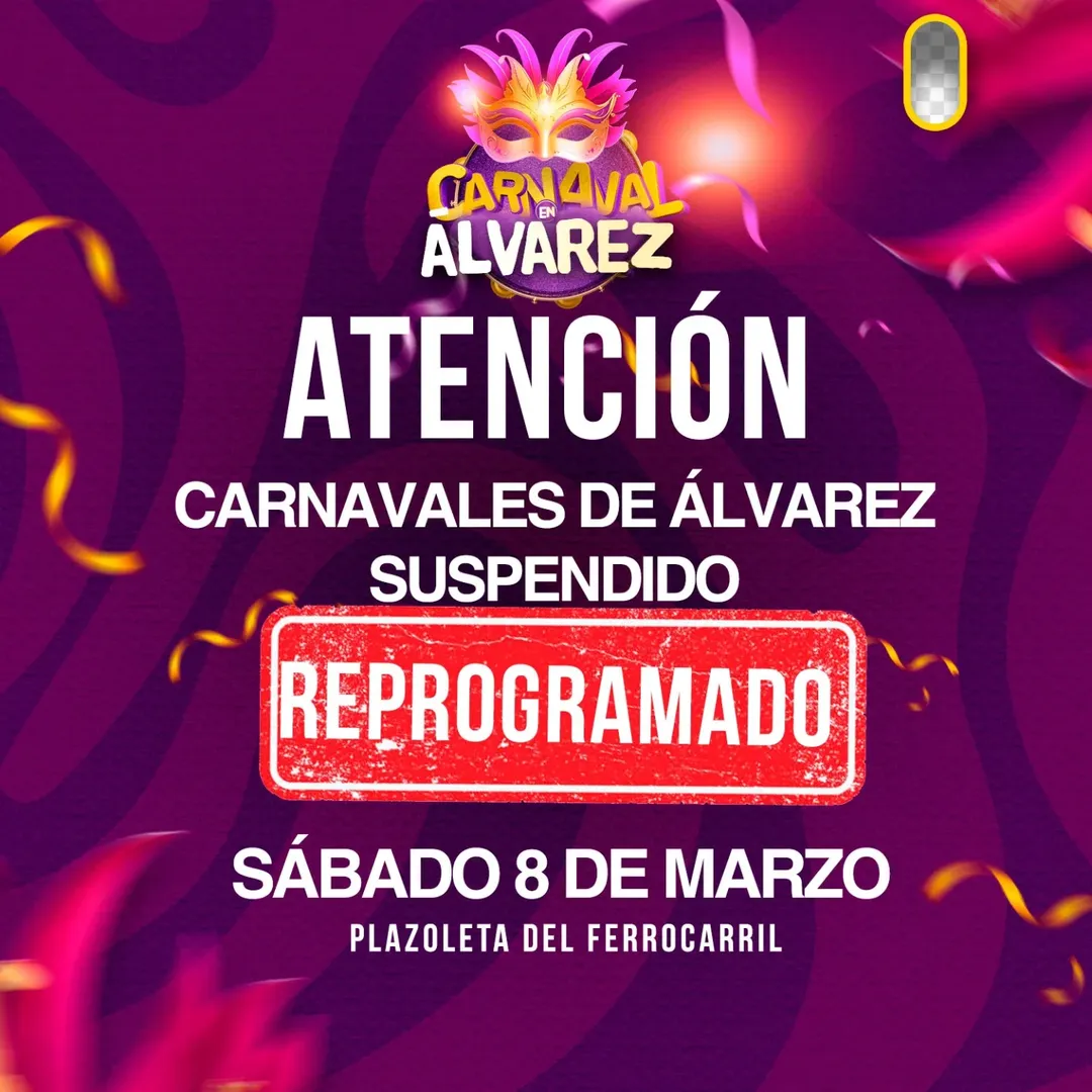 Debido a los pronósticos climáticos, la comuna gobernada por la gestión De Genaro – Camilletti informa que la fecha del Carnaval que estaba estipulada para este sábado 1 de marzo se reprograma para el próximo fin de semana y se hará el sábado 8 de Marzo, misma hora y lugar.