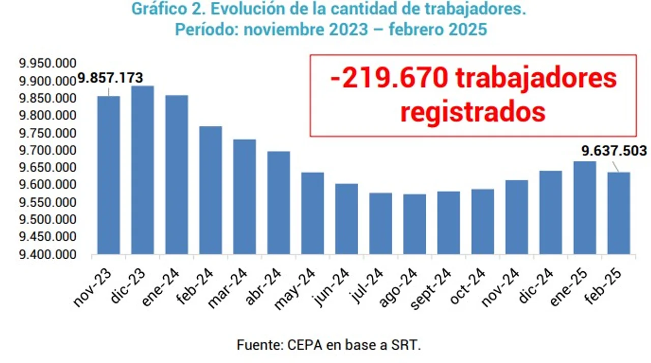 Sin embargo, las mayores expulsiones de mano de obra entre noviembre de 2023 y febrero de 2025 sucedieron en las empresas de más de 500 trabajadores: 174.320 registrados se dieron de baja.